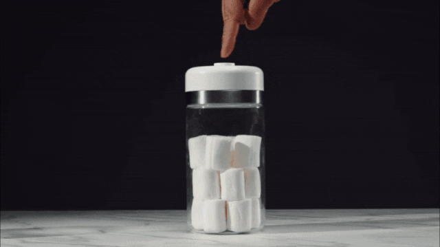 シェルブリュの『スマートキャニスター』は最大20kPaで強力に真空状態を保ちます。コーヒー豆だけでなく、野菜や果物、お菓子、米、ナッツ類なども通常保存よりも長く保存することが出来ます。